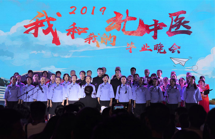 2019年6月24日,北京中医药大学体育馆三层到处充满着欢快的气息,这里正在举办“我和我的北中医”毕业晚会。