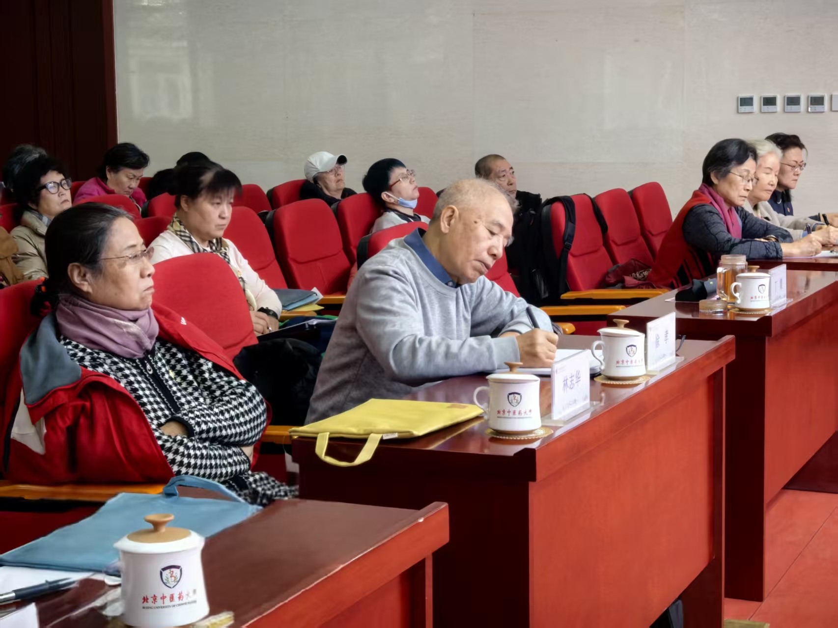 开班第一课上,丁霞副校长通过题为《深化综合改革 聚焦三年行动 加速推进中医药特色世界一流大学建设》的专题报告,向离退休教职工代表通报了学校综合改革部署和教育强国建设三年行动计划的推进情况。报告从背景与使命、目标与举措、任务与进展三个维度展开,系统阐述了学校以“教育强校、科技强校、人才强校”为核心的发展路径,全面解读了“38313” 计划的核心要义。她强调,全面深化综合改革须紧扣六个关键着力点,即契合社会现实需求,转化培养模式;提升竞争力影响力,拓展发展空间;推动科研提质增效,加速成果转化;增强原创理论贡献,彰显特色优势;强化社会服务效能,突破现有局限;凝聚共识汇聚合力,实现一流目标,全面深化综合改革,积极探索创新中医药特色世界一流大学的发展道路。她指出,在学校党委的坚强领导下,齐心协力扛牢新时代中医药高等教育国家队、排头兵的使命,奋力书写“强国建设、北中医何为”精彩答卷,不仅需要全体在职教职员工的拼搏奉献,更离不开各位老同志的关心支持和智慧引领。她希望老同志充分发挥阅历优势、专业专长,与学校育人工作精准对接、深度融合,做“红色岐黄”的引路人,在思政引领中筑牢强国根基;做“教学质量”的守护者,在薪火相传中夯实育人根本;做“岐黄新人”的培育者,在传帮带中锻造专业梯队;做“中医药文化”的传播者,在守正创新中擦亮文化名片;聚力打造 “银龄 + 岐黄” 特色鲜明、内涵深厚的北中医 “银龄行动” 党建育人品牌。
