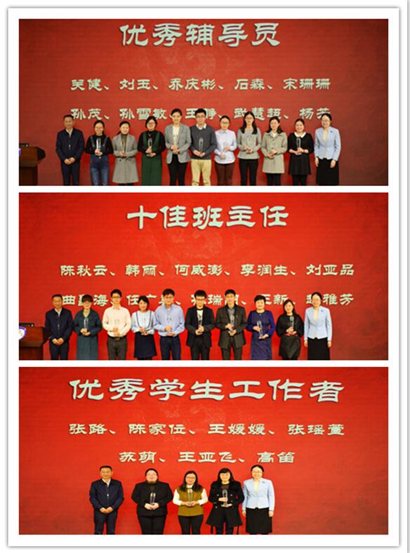 随后,大会对获得上一学年北京中医药大学优秀辅导员、十佳班主任以及优秀学生工作者的老师们进行了表彰。